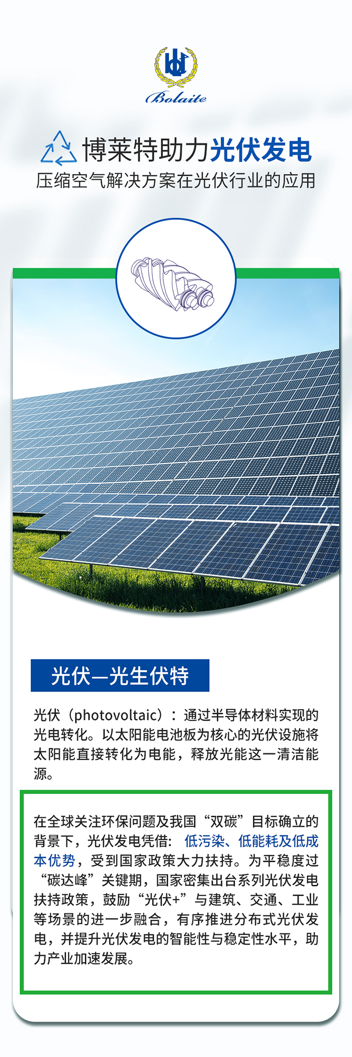 光伏企业是我们重点支持的合作伙伴。博莱特将继续不断创新,与光伏行业合作伙伴共话可持续发展之路。