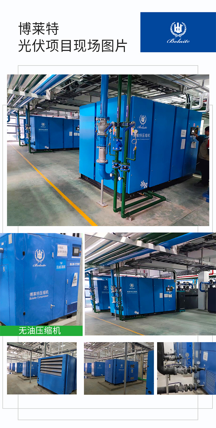 通过多年的发展,博莱特在光伏行业积累了丰富的项目经验,在全国多地结合“低碳+数字化”行业应用方案,助力多家光伏上游和中游企业完成空压机站房建设,实现节能减碳目标。